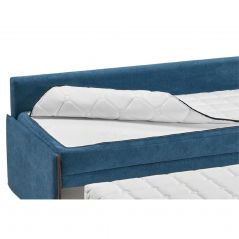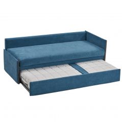 Dotato di una base superiore fissa e di un letto inferiore estraibile, il divano si trasforma rapidamente in una soluzione notte perfetta per ospiti o per l’uso quotidiano. Entrambe le reti sono a doghe in legno, garantendo un supporto ergonomico e resistente nel tempo. Completo di due materassi in poliuretano espanso traspirante di 15 cm di altezza, offre un riposo confortevole e salutare. Il materasso superiore misura 80x190 cm, mentre quello inferiore 75x185 cm, per adattarsi perfettamente all'interno della struttura.